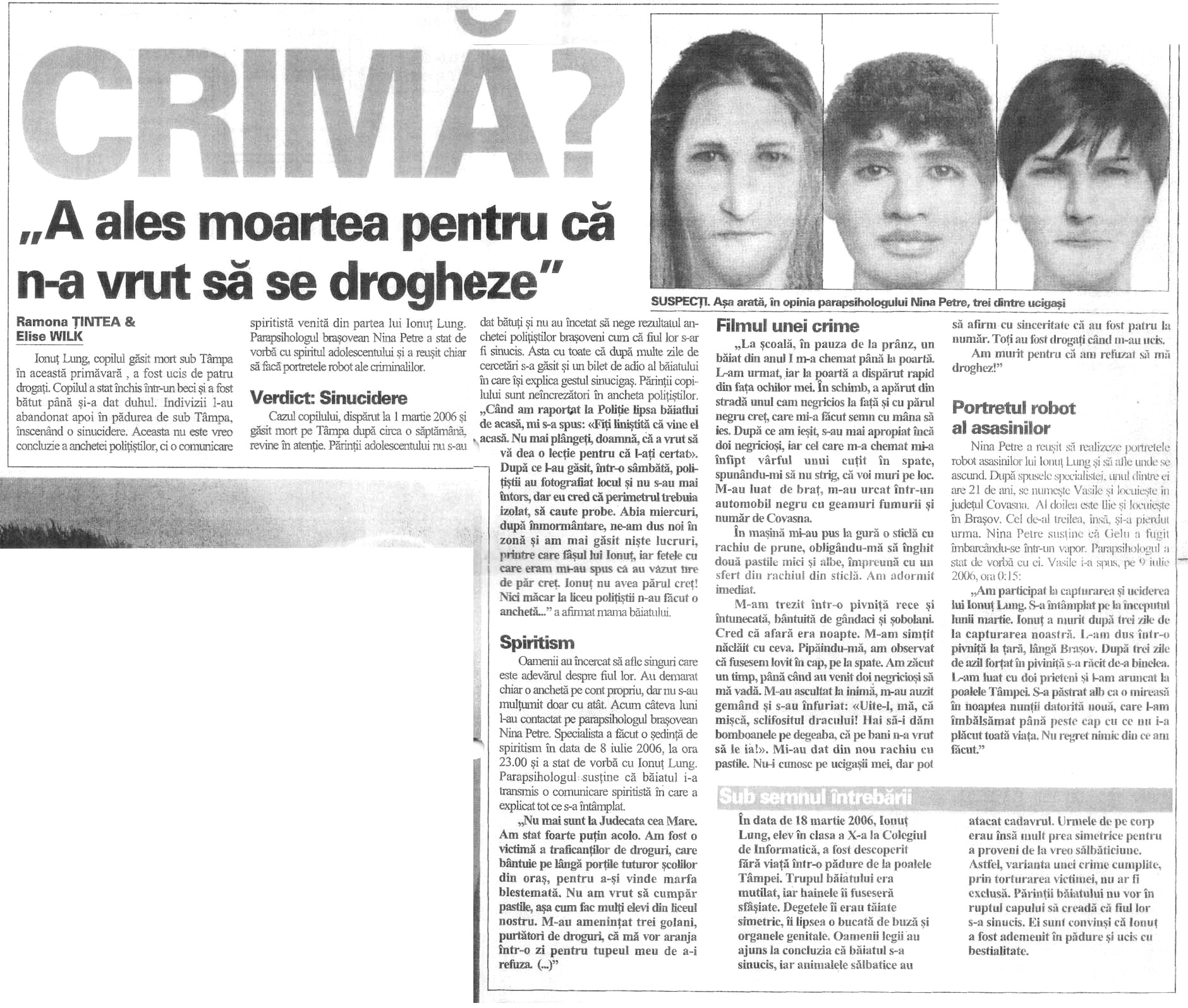Sursa articolului: Cotidianul "Libertatea", nr.5477/6 august 2007, paginile 12-13