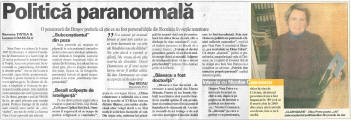 | Cotidianul braşovean "Transilvania Expres" a publicat în numărul 3960/18.08.2006 rezultatele cercetărilor mele prin metode parapsihologice în cazul decesului liceanului Ionuţ Lung. Iniţiativa ziarului este lăudabilă, fiindcă astfel se reabilitează memoria tânărului dispărut şi se dă un nou imbold anchetei oficiale, nefinalizate încă. Cititi articolul din ziarul "Transilvania Expres"! |