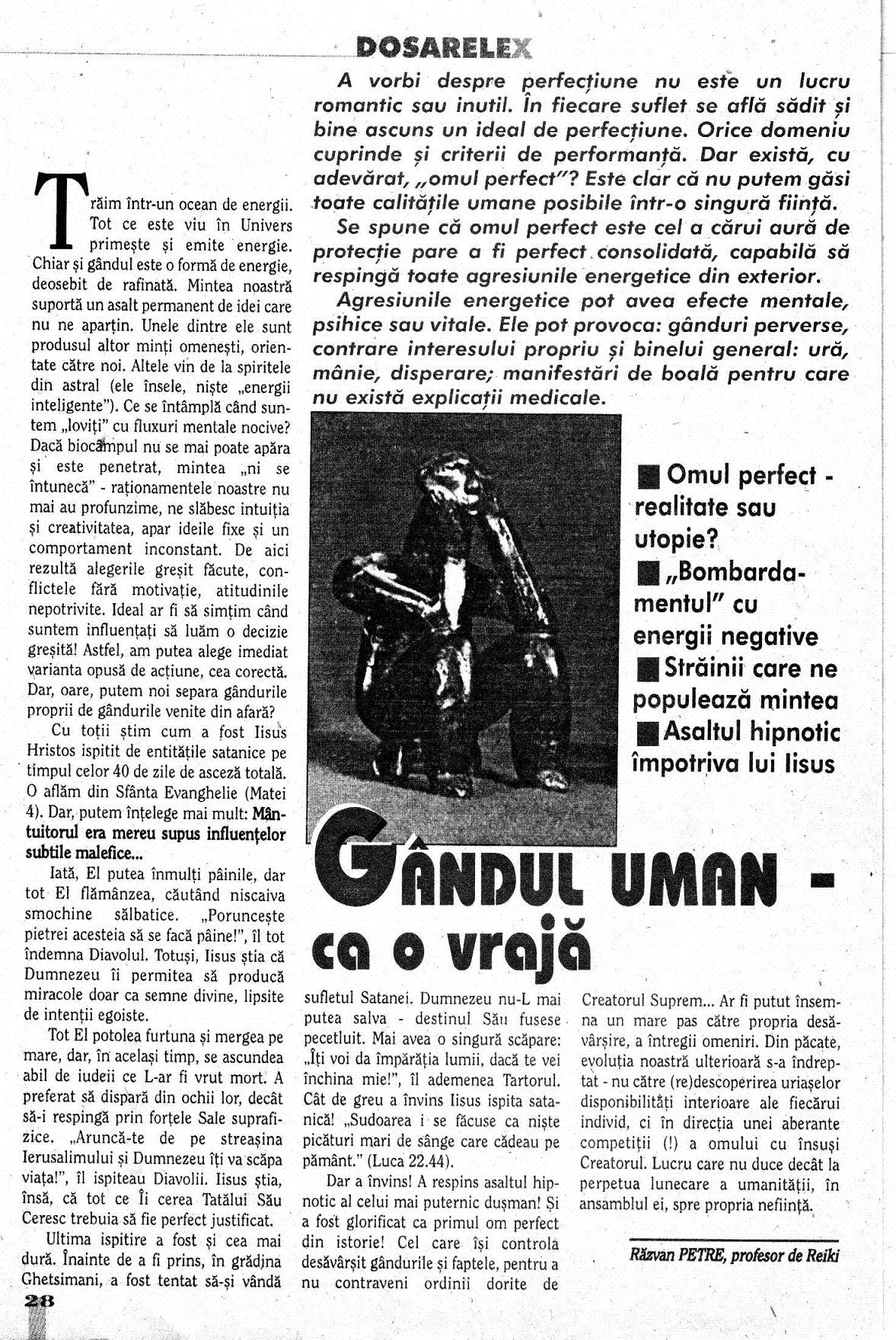 | Feb 2001 | Revista VIAŢA FĂRĂ SECRETE | 28 | "Gândul uman - ca o vrajă" | Răzvan Petre | B/W |