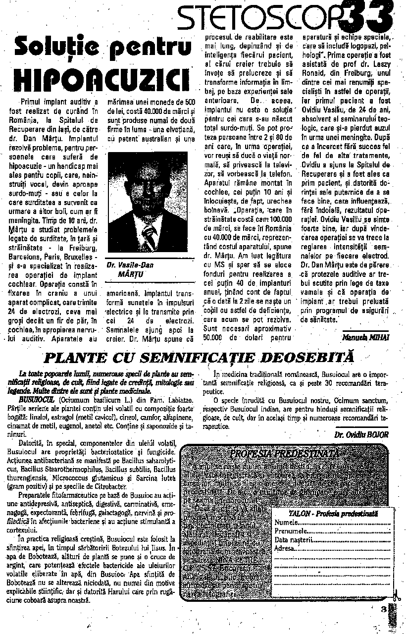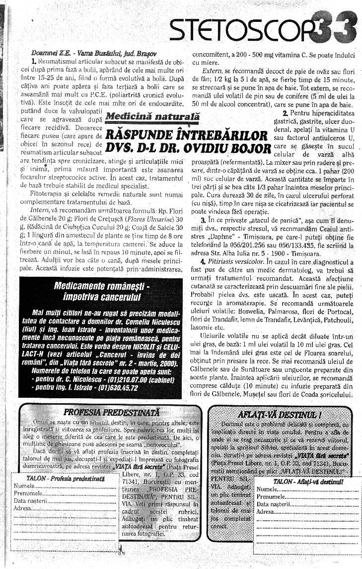| Iun 2000 | Revista VIAŢA FĂRĂ SECRETE | 32, 33 | Taloane (Profesia predestinată, Aflaţi-vă destinul), Silvia | Nina Petre |