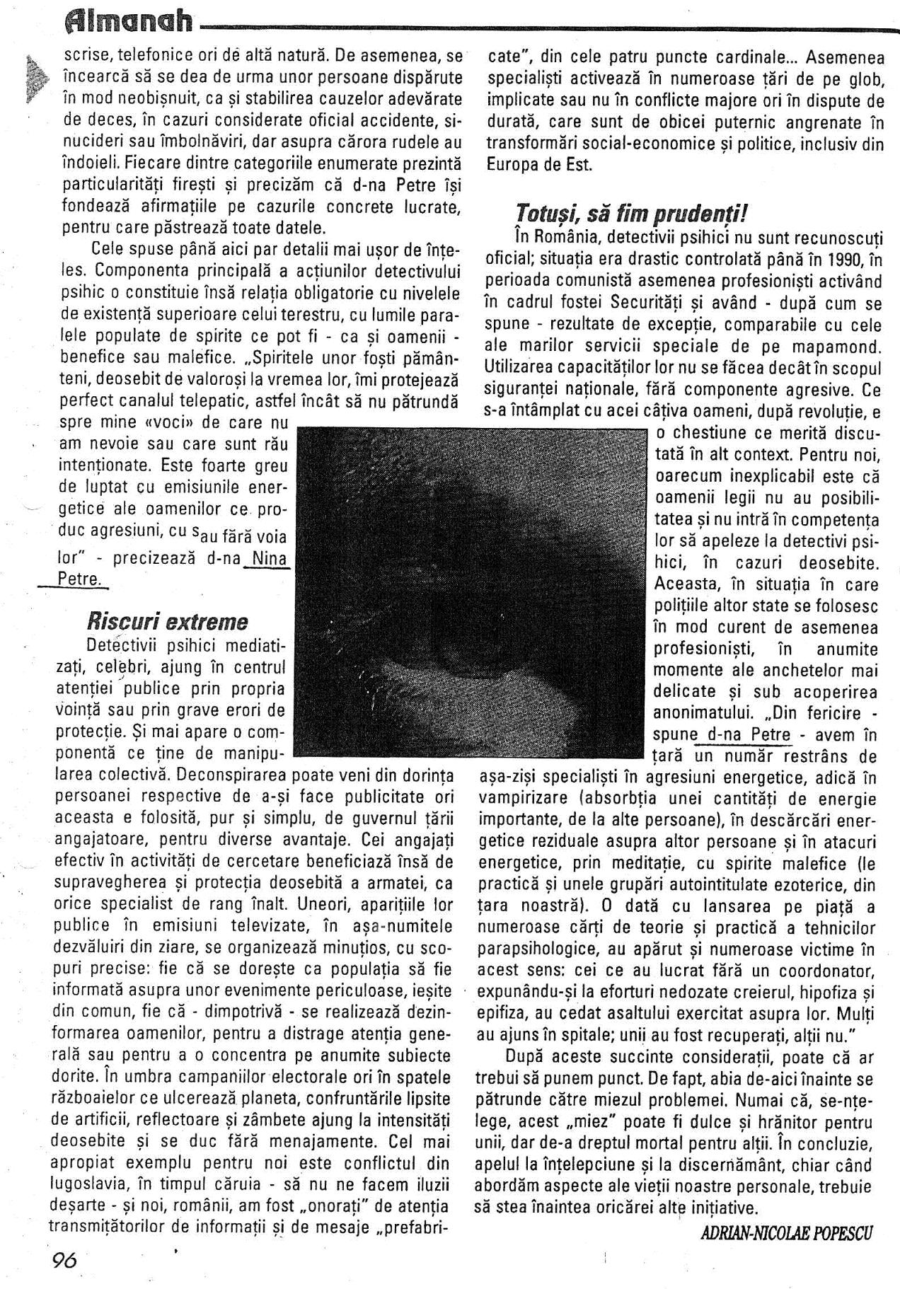 | 1999 | Almanah FEMEIA | 95, 96 | "Detectivii psihici" | Adrian-Nicolae Popescu |