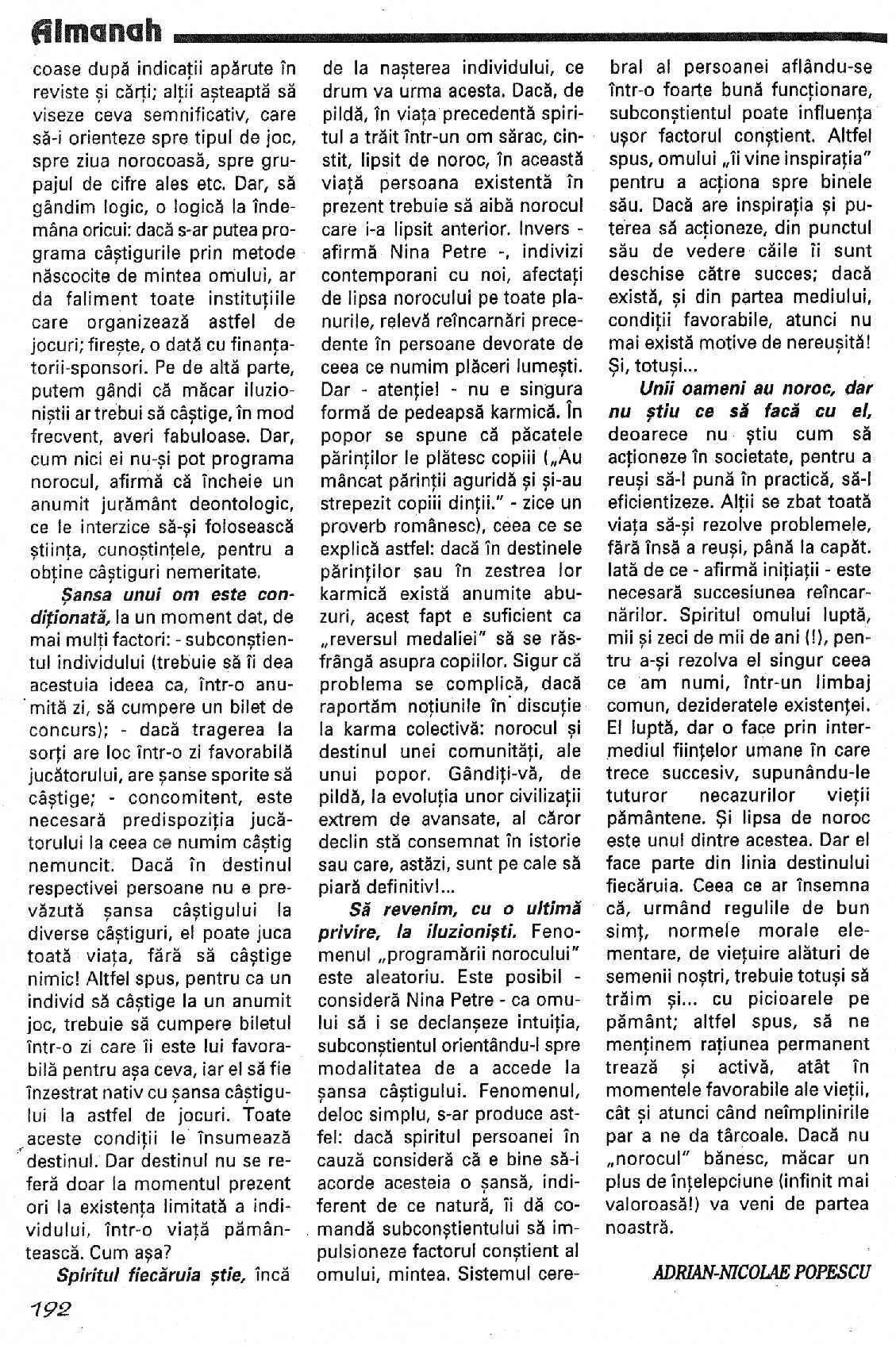 | 1999 | Almanah estival FEMEIA | 191, 192 | Paranormalul de lângă noi - "Norocul şi destinul" | Adrian-Nicolae Popescu |