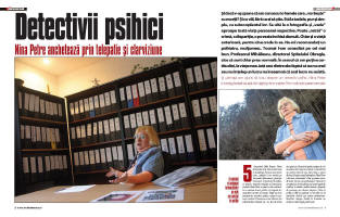 Zece mii de cazuri, în 14 ani. De la matematică la spirite nu-i decât un pas. Biroul Ninei Petre, aflat într-o casă din Scheii Braşovului, nu are nimic senzaţional. O masă, nişte hărţi, calendarul creştin-ortodox pe 2008. Şi rafturi cu dosare, multe dosare. În 14 ani de investigaţii, a adunat în jur de zece mii de cazuri. Vorbim despre vreme, emisiuni TV, elodii şi alte şlagăre la modă. Aşa, pentru încălzire. Sincer, nu prea ştiu cum să încep discuţia asta. Îi dau două fotografii, cu nişte prieteni. Îmi cere numele de botez şi se uită la ele, preţ de câteva minute. Apoi îmi spune amănunte din viaţa personajelor. Pentru unul dintre ele, lucrurile se potrivesc de minune. De la temperament, până la familie şi stare de sănătate. Cred că am fost cam şocată, pentru că a doua descriere nu mi-o mai amintesc. Mă grăbeam, probabil, să o întreb cum face asta. Povestite de ea, lucrurile par extrem de simple. Doar că... paranormale: "Am nevoie de numele de botez al persoanei ca să mă împrietenesc cu subconştientul ei. E ca şi în viaţa de zi cu zi, comunici mai uşor cu un om dacă îi spui pe nume. Îl contactez telepatic, îmi dau seama dacă e viu sau mort, unde se află, în ce stare, cum a ajuns acolo. Pot să-i pun întrebări sau să iau date din subconştientul lui, pur şi simplu. În cazul unei investigaţii, nu mă pot baza doar pe telepatie. Aşa că analizez informaţiile, le verific, apelez şi la alte metode. Telepatia are şi riscuri, pot nimeri peste un subconştient care se protejează sau îmi oferă date false. În cazul clarviziunii, primesc imagini, sau doar flash-uri, pe ecranul mental. Este ceea ce se cheamă că vezi cu creierul. Toţi primim astfel de mesaje, dar numai unii au capacitatea să le reţină, să le pună cap la cap, să le interpreteze. Investigaţiile mele combină telepatia şi clarviziunea, pentru că ele se susţin şi se completeză reciproc. În cazurile dificile, analiza şi interpretarea informaţiilor astfel obţinute durează destul de mult. Zile, săptămîni, uneori chiar luni. Eu nu mă joc cu viaţa oamenilor, trebuie să fiu sigură când le spun ceva!" Clienţii Ninei Petre sunt oameni obişnuiţi, cu un nivel de educaţie peste medie. De regulă, apelează la ea doar după ce au epuizat căile normale, gen investigaţii medicale sau anchete ale poliţiei. Şi după ce sunt convinşi că numai paranormalul îi mai poate ajuta. Pentru problemele legate de destin şi de sursa răului din noi, însă, detectivul psihic pare a fi chiar prima opţiune: "Mulţi oameni mă întreabă ce-i cu ei pe lumea asta, ce au de făcut? Şi de ce se simt neîmpliniţi, deşi au o profesie onorantă şi o situaţie materială decentă. De cele mai multe ori, persoanele în cauză nu se află pe linia destinului lor. Şi-atunci cad în depresii, simt un gol imens şi nu ştiu să şi-l explice. Vorbim despre asta, analizăm cum s-a produs ruptura, de unde provine răul. Şi, evident, facem corecturile necesare". Sigur că această "plimbare" prin subconştientul nostru, prin vieţile anterioare sau prin viitor – nemaivorbind de conversaţiile cu spiritul celor morţi – îmi dă o stare nu tocmai confortabilă. Nu prea înţeleg, iar Nina Petre îmi explică şi de ce: "Nivelul comun de comunicare are tot soiul de bariere, este limitat în spaţiu şi timp. La un nivel superior, însă, toate limitele dispar. Informaţiile vin pe cale energetică, nu mai există distanţe între ani, lumi sau spaţii geografice". Şi cum a ajuns la acest nivel? Oho, e multă trudă! În primul rând, trebuie să ai un anume har. Apoi să-l întreţii, să-l cultivi, să-l educi, să-l munceşti. Nina Petre a fost profesoară dematematică, peste 20 de ani. Chiar dacă, încă din copilărie, avea viziuni paranormale. Şi chiar dacă, în adolescenţă, şi-a dorit să devină poliţist. La un moment dat, însă, pe la 45 de ani, şi-a dat demisia din învăţământ şi s-a concentrat pe investigaţii parapsihologice. Susţinute de meditaţii yoga, cursuri de biosinergetică, masaj şi biodetecţie. A primit şi iniţierea în reiki, de la maestrul Dumitru Hristenco. Acum are o firmă, cu acte în regulă, prin intermediul căreia, împreună cu soţul, şi el iniţiat în practici ezoterice, îşi ajută clienţii. De regulă, nu primeşte pe nimeni la birou. Fiindcă investigaţiile de acest fel necesită discreţie şi un mediu liniştit, pentru concentrare. Cazurile se preiau şi se urmăresc prin corespondenţă electronică. Zeci de mail-uri, detalii, fotografii. Tariful detectivului psihic depinde de complexitatea cazului. Pentru exemplificare, o consultaţie simplă costă 50 RON, un studiu karmic, plus previziuni – 200 RON, o transcomunicare, cu interpretarea informaţiilor – 100 RON. Cei care doresc să o contacteze pe Nina Petre îi pot scrie la adresa psydetective@yahoo.com.