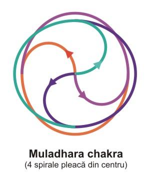 În Fig.12, am figurat cele 4 spire (sau spirale ori spiţe) ale chakrei Muladhara. Culorile au doar rol ilustrativ.