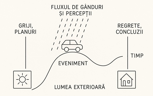 Dacă mintea ar fi o maşinuţă, atunci drumul pe care rulează ar fi timpul, iar ploaia ar fi gândurile. Un eveniment ar fi un mic deal pe care maşinuţa urcă şi coboară.