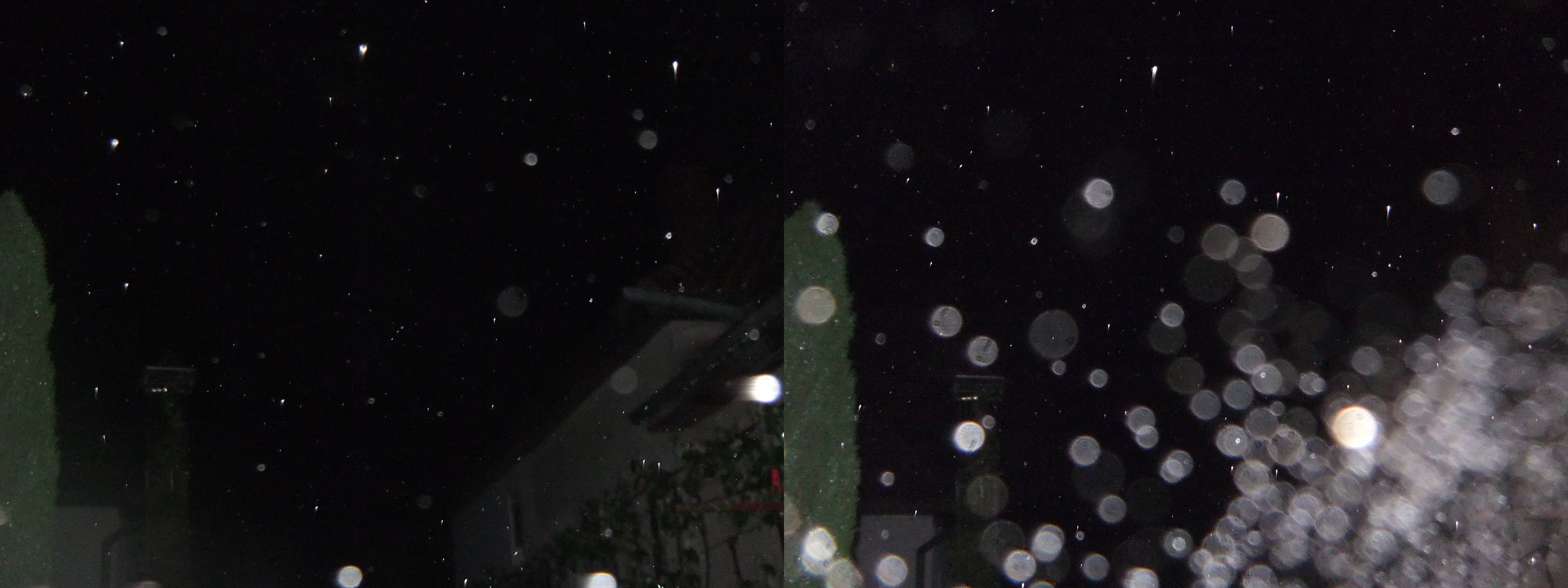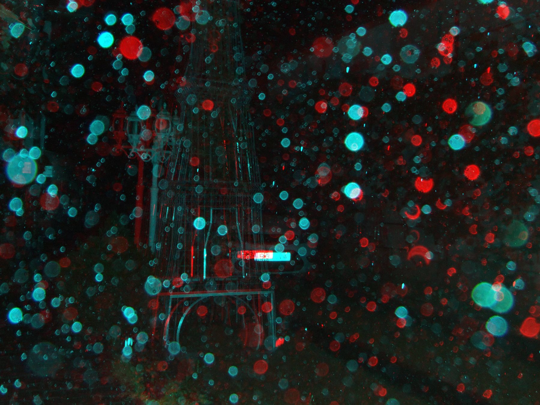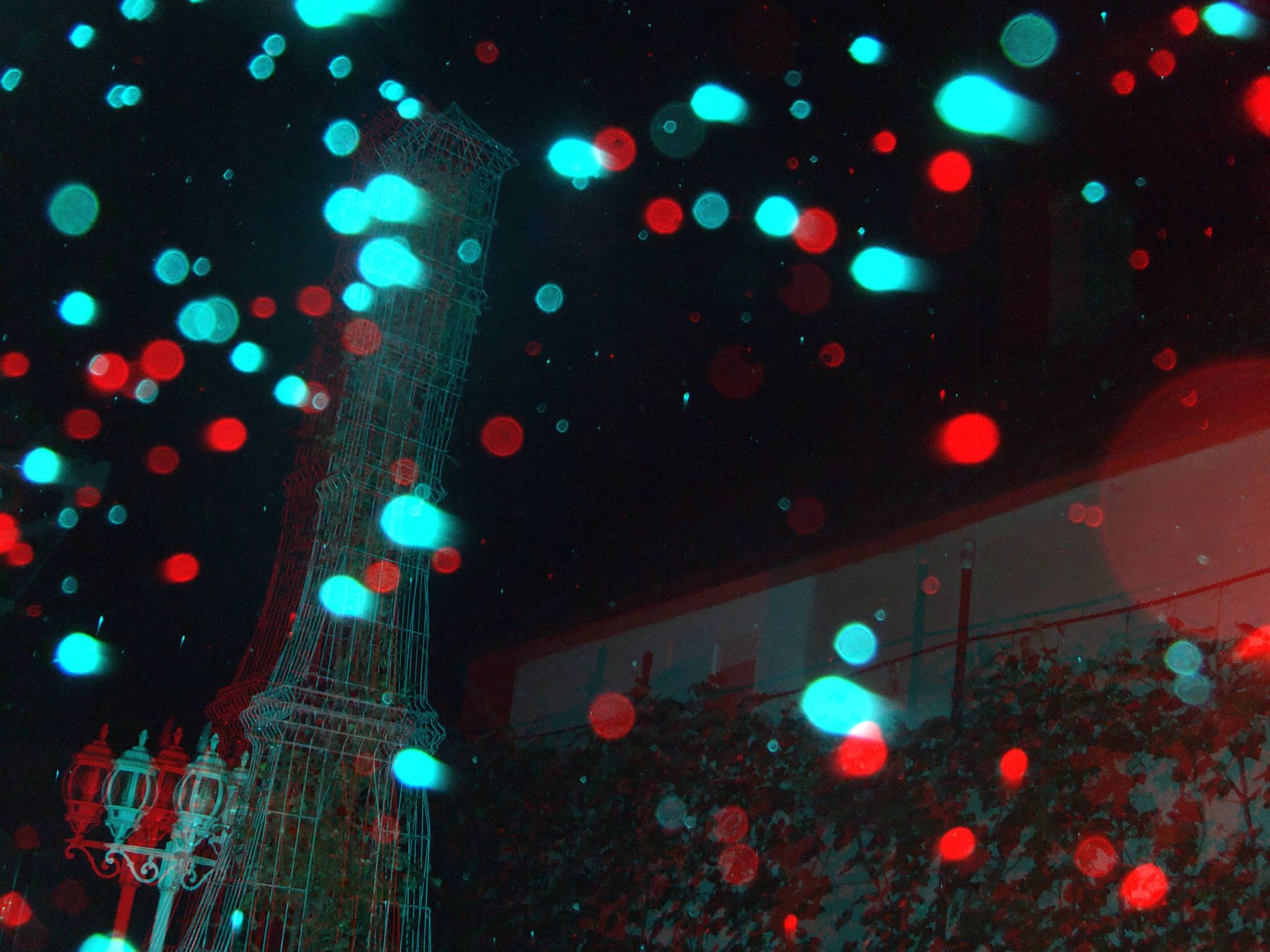 - Pentru început, vom exemplifica cu o fotografie anaglifă cu fulgi de zăpadă (foto 2). Ea a fost realizată de domnul Ioan Șuteu, unul dintre puținii români care au achiziționat un aparat foto 3D special pentru scopul studierii globilor luminoși. Vedem că fiecare fulg de omăt mai măricel apare în ambele poze (stânga-dreapta) ușor decalat. Cu alte cuvinte, același fulg apare colorat în cian (albastru-deschis) dacă provine din poza din stânga, și în roșu dacă provine din poza din dreapta. Fulgii sunt, prin urmare, obiecte reale, situate suficient de departe de aparat ca să poată fi înregistrate și percepute corect în spațiu.
