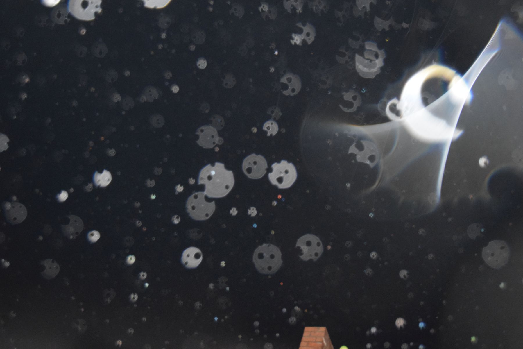 Totuși, repet, am dubii că, în imediata apropiere a aparatului, oarecum sub protecția sa, curenții de aer purtători de microparticule pot provoca mișcări ca ale globilor autentici, anume: mișcări simultane în direcții diferite, schimbări bruște de direcție, deplasare dinspre obiectiv (micșorându-și treptat mărimea) etc.